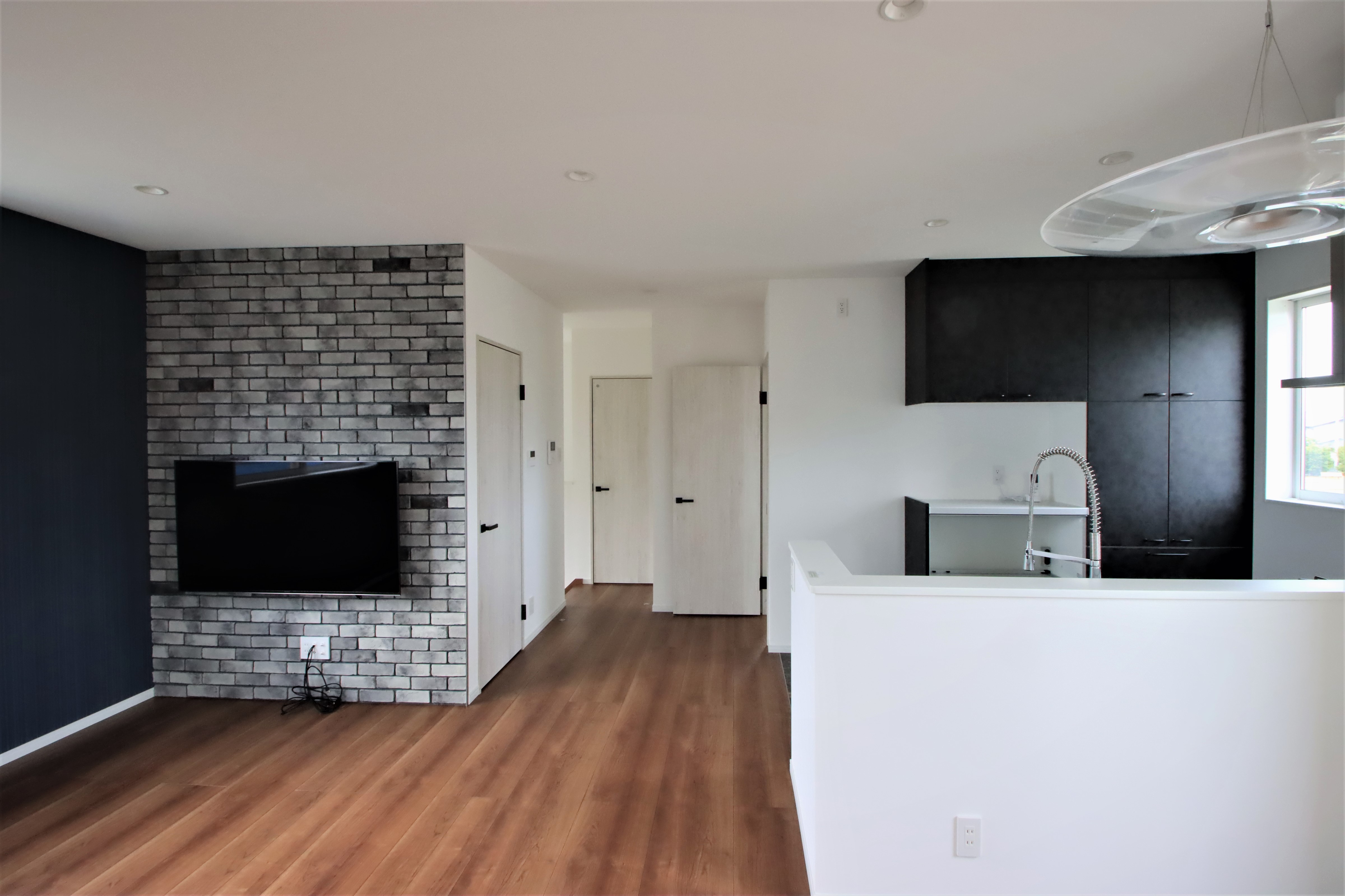 No.7772 オルタナブリック グレー を屋内壁にご使用頂きました。 【商品をお使いいただいた感想】 リビング壁のアクセントに! TVまわりが、ブリックタイルを使用することにより恰好良くなりました!