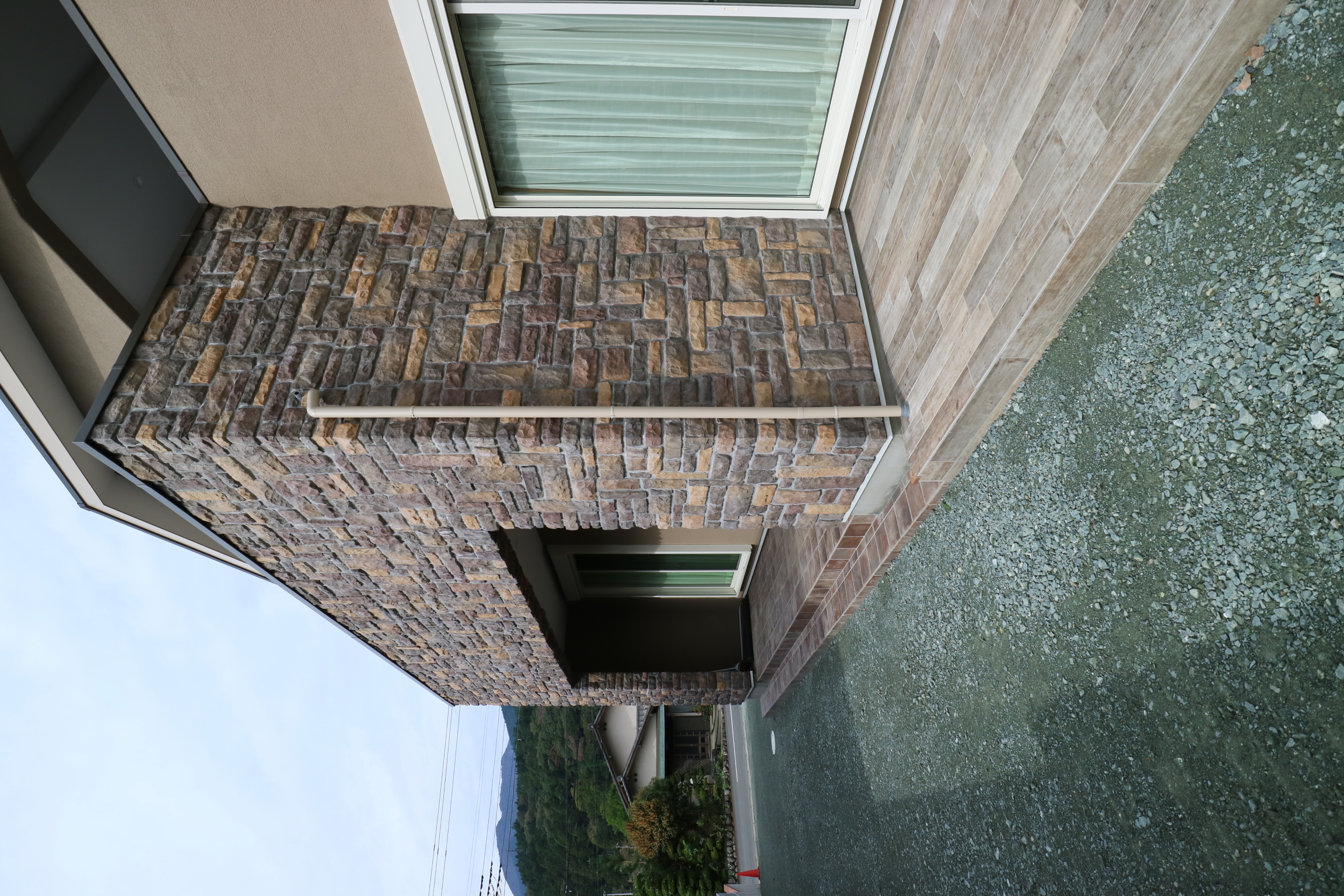 No.7625 スクエアストーンブラックMIXを屋外壁に,No.7943 プランクウッドフラッシノ,No.7565 ボストン ウェストを屋外床にご使用頂きました。