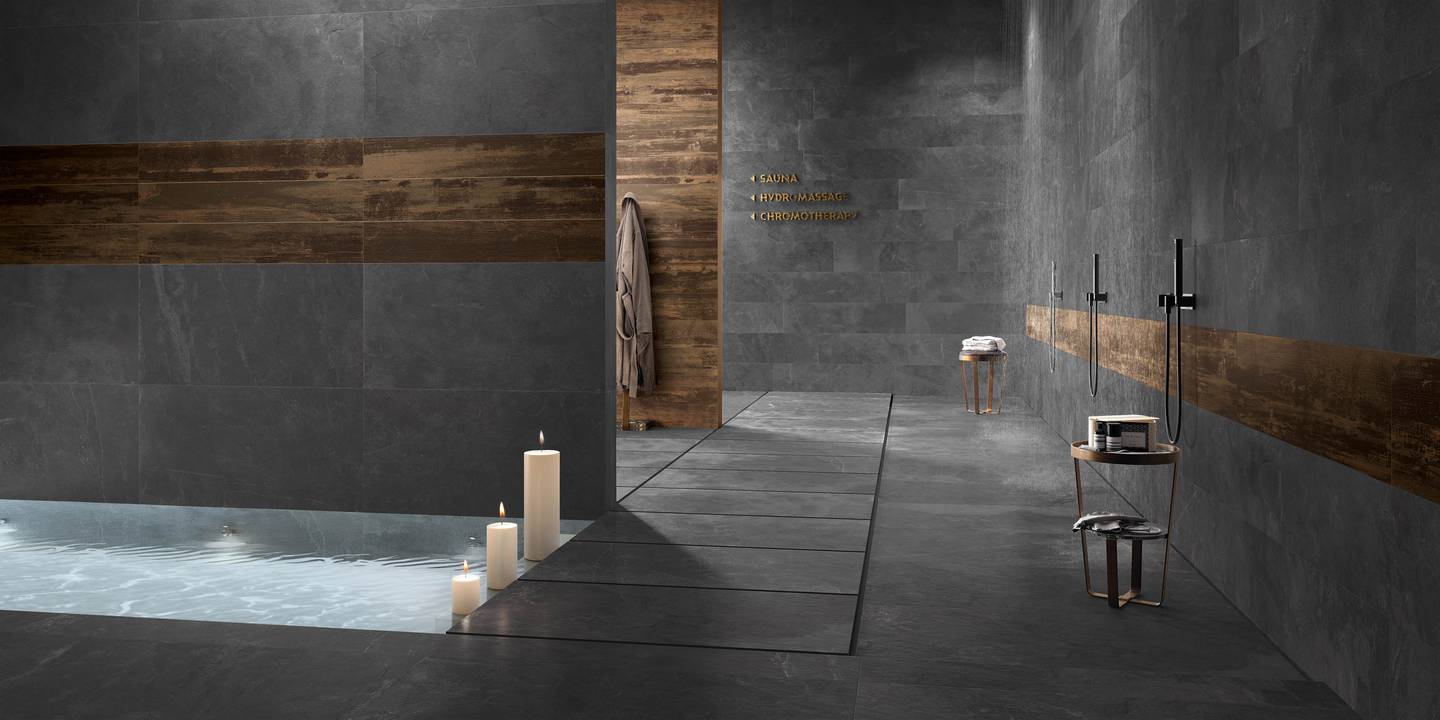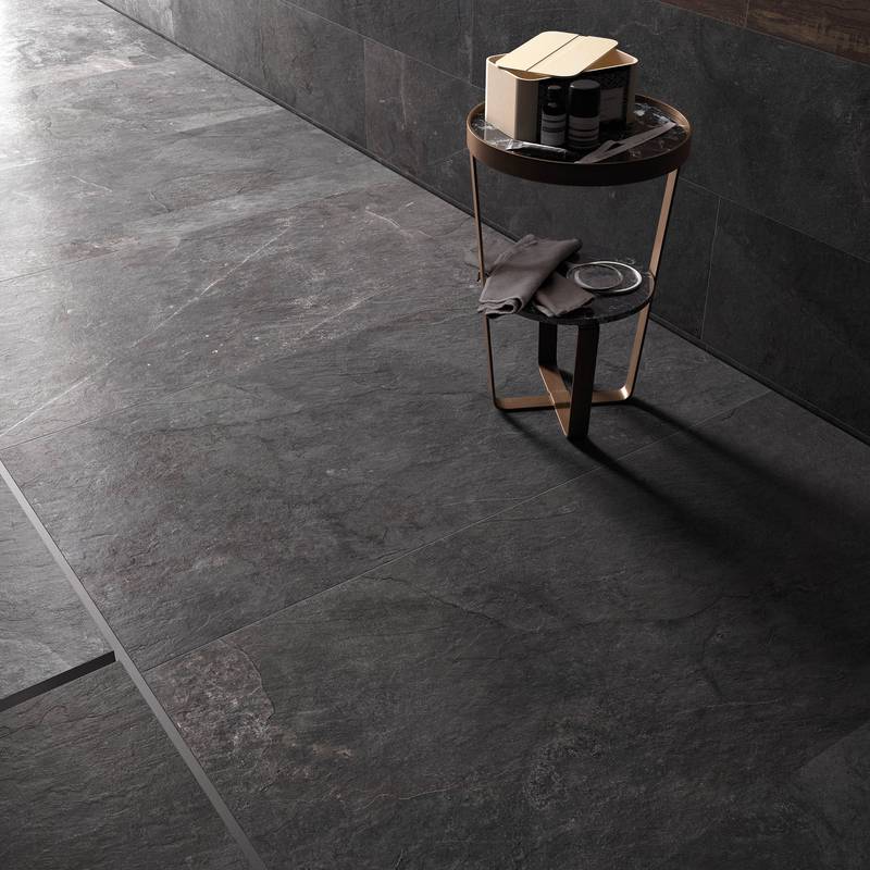このアルデシアネラ(ARDEAI NERA)は、イタリア語で黒の粘板岩(スレート)という意味です。ダークストーンの深い魅力で、唯一無二の魅力的で洗練された空間を構築します。