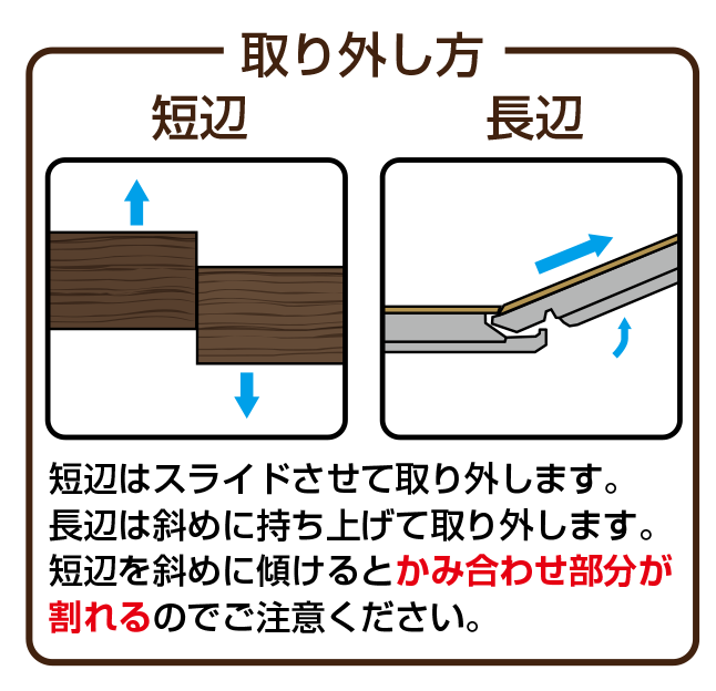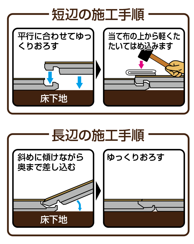 ④短辺にタオルなどの当て布をあてて、その上からゴムハンマーでやさしく叩いて段差がなくなるようにはめ込みます。